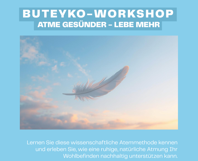 Die Art und Weise, wie wir atmen, hat einen entscheidenden Einfluss auf unsere Gesundheit, unser Nervensystem und unser allgemeines Wohlbefinden. Im Buteyko Atem-Workshop lernen Sie eine medizinisch fundierte Methode kennen, die auf einer ruhigen, natürlichen und gesunden Atmung basiert.